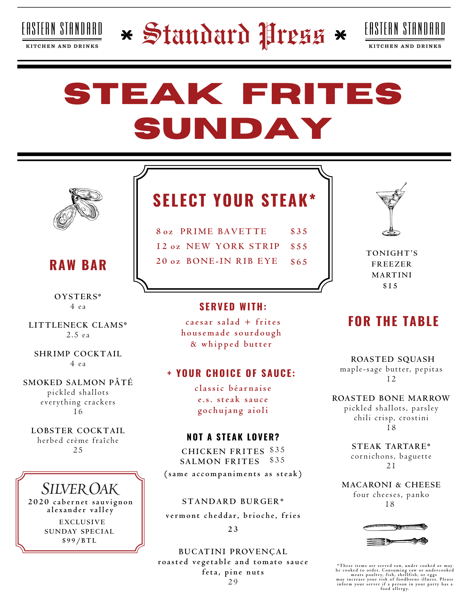 We offer this menu every Sunday evening. Please note that the full dinner menu will not be available.